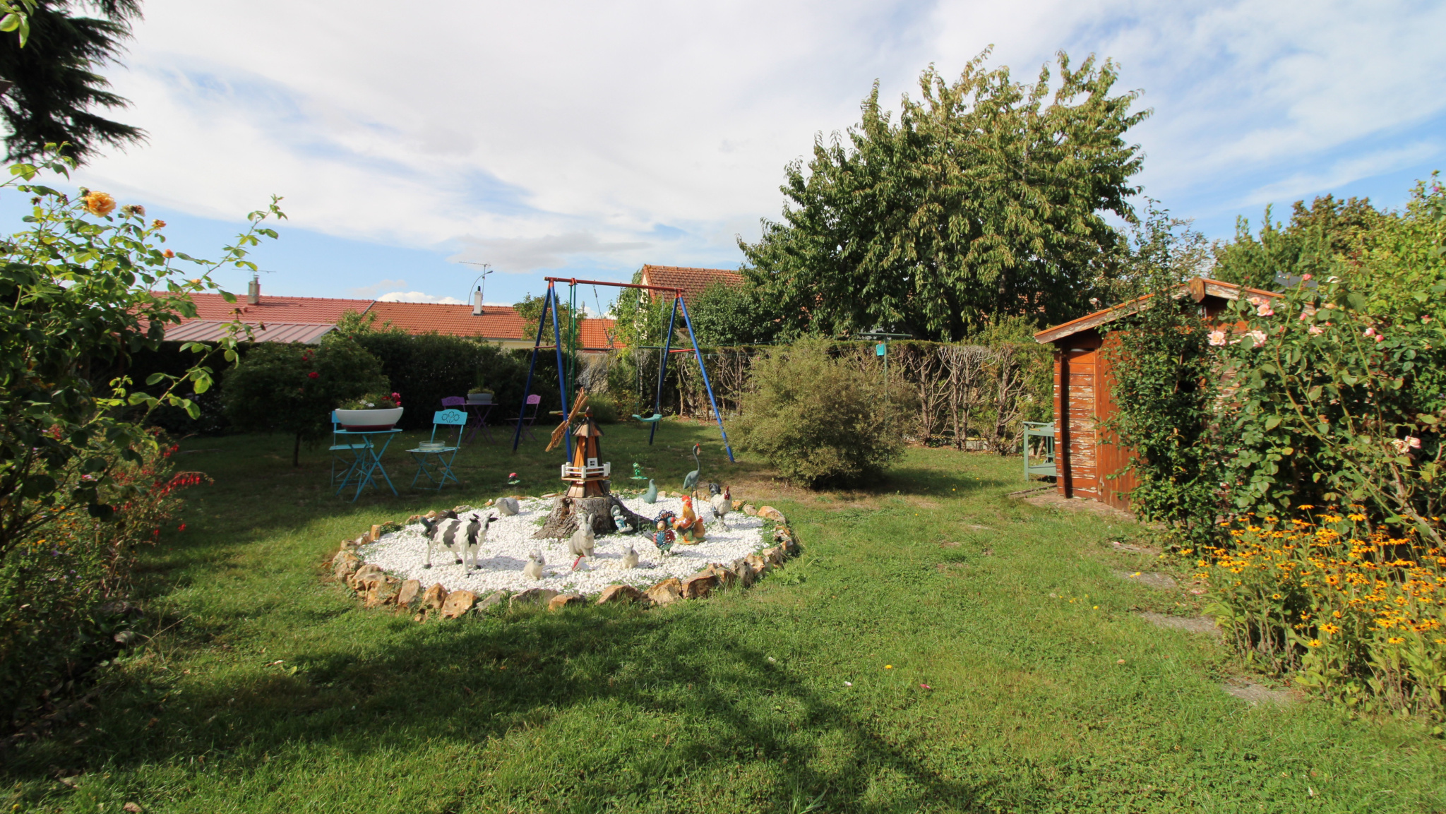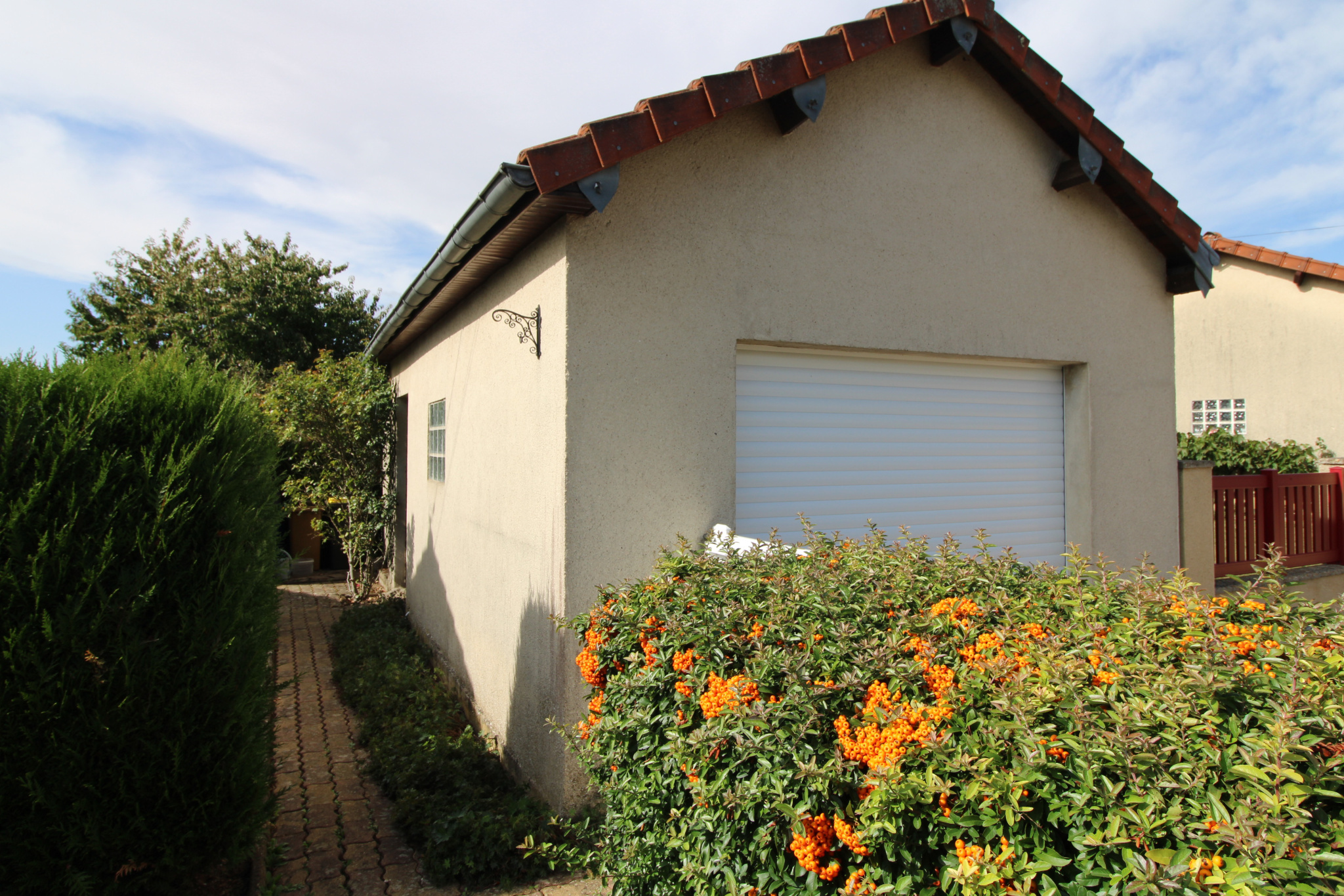 Terrasse couverte. Dépendances: garage avec atelier, abri jardin, bûcher. Tout à l'égout. Terrain clos de 470 m² env.