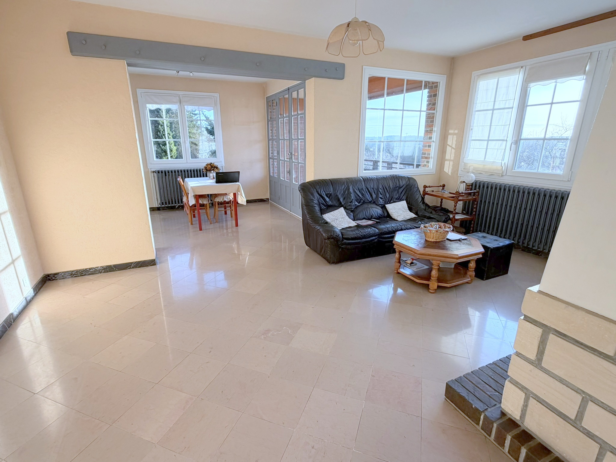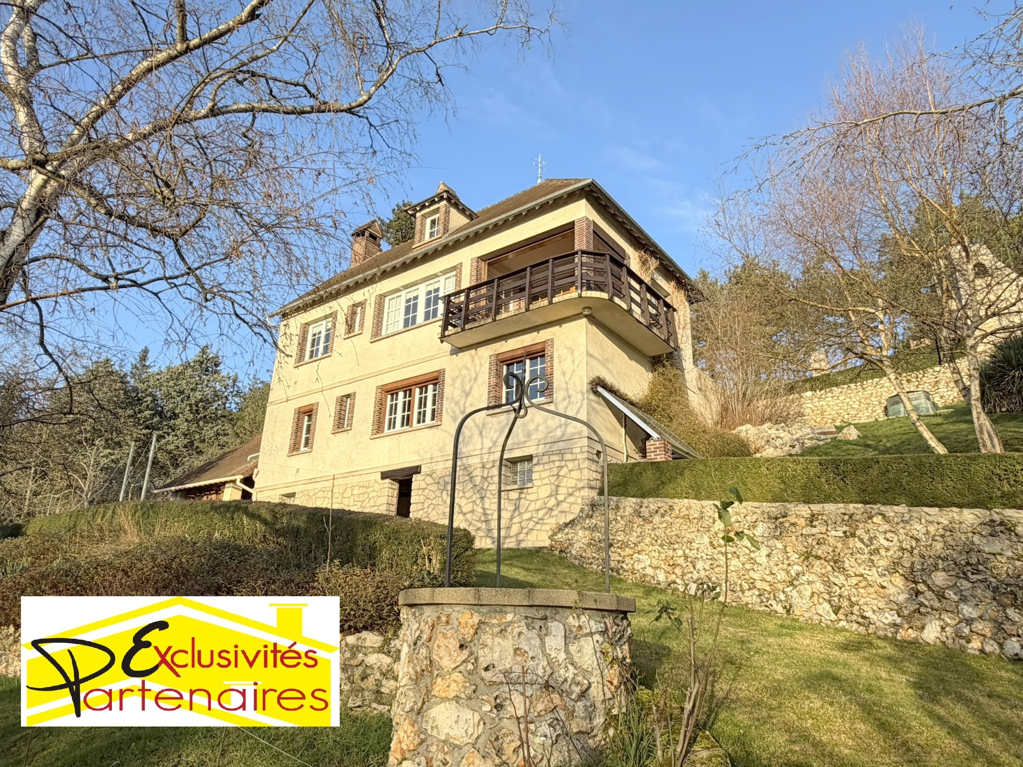 Maison ancienne d'architecte avec vue dégagée édifiée sur 840m² de terrain. Elle comprend une entrée, un séjour, une cuisine aménagée, wc ; en rez de jardin : un couloir, une salle de bains, wc séparés et 2 chambres ; au 1er étage : un palier desservant une chambre et un dressing.